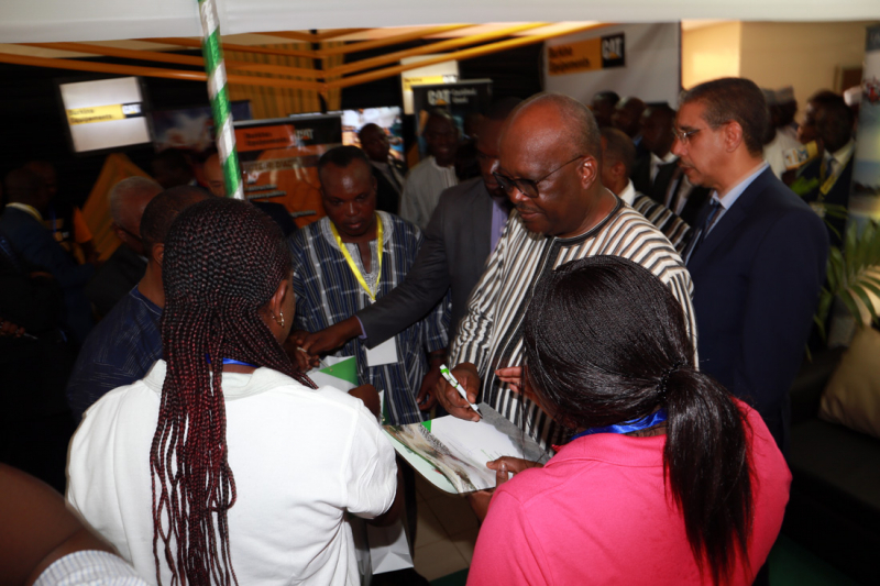 Lors de la visite des stands, le Président du Faso a marqué un arrêt sur le stand COGEB, qui s’est traduit par un entretien cordial avec les collaborateurs présents et la dédicace d’une plaquette présentant les activités d’Afric Carrières.