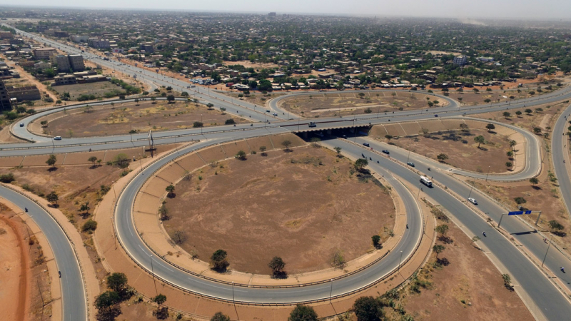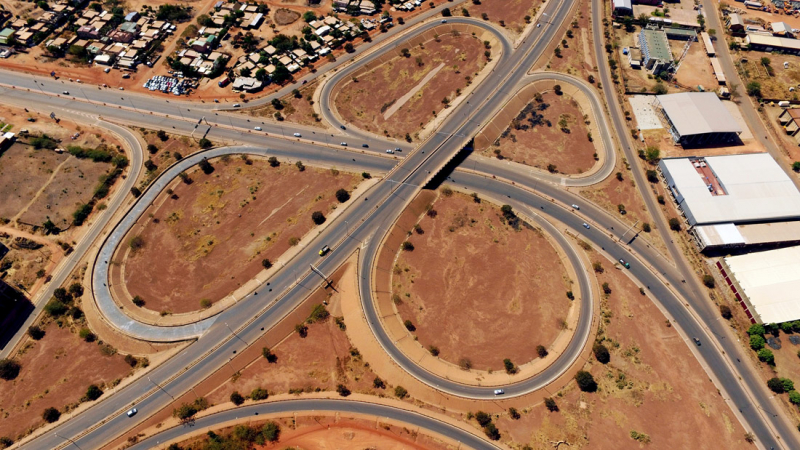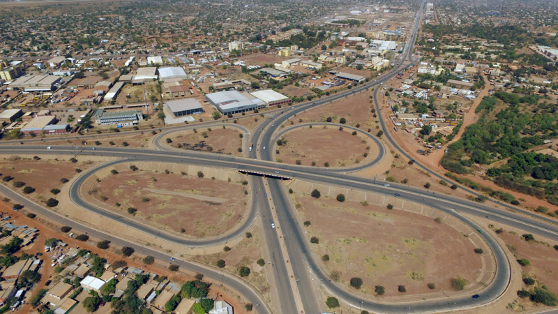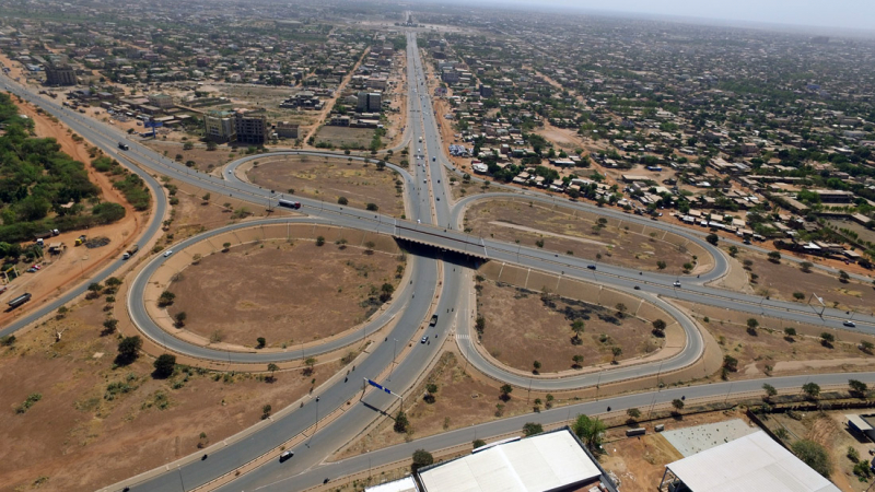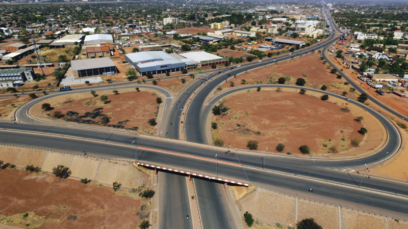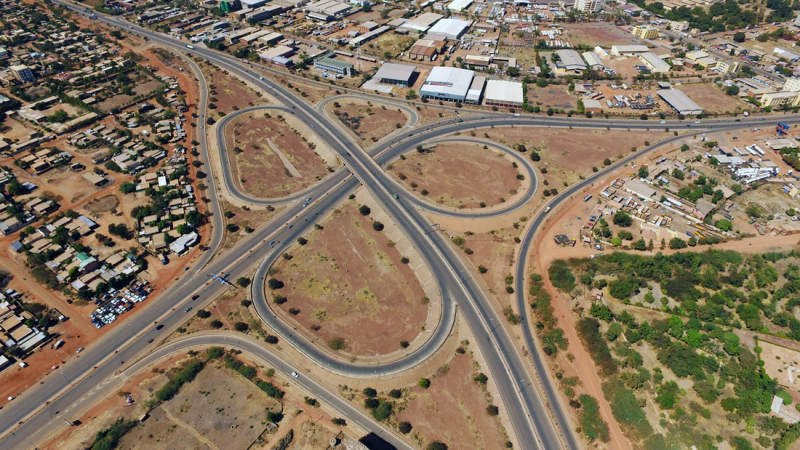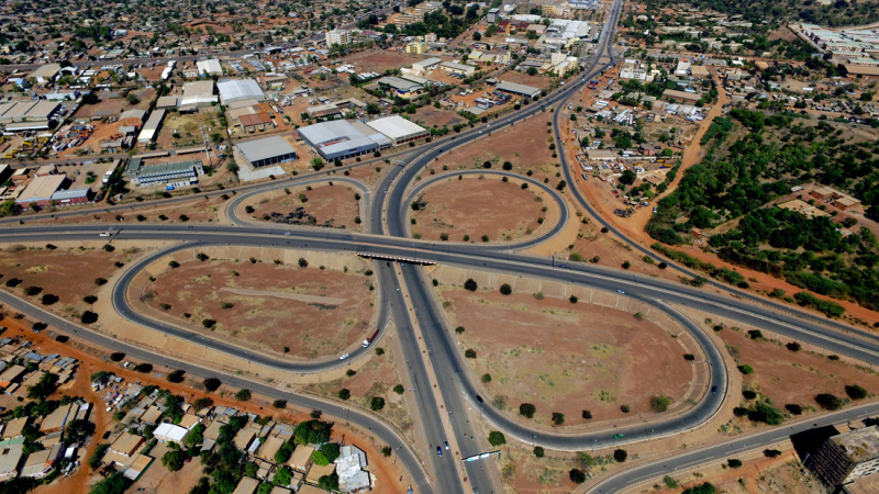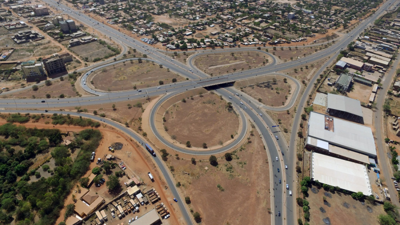 Travaux de construction de l'échangeur de Ouaga 2000, Premier échangeur du Burkina Faso. Maître d'ouvrage : Ministère des Infrastrcutures et du Désenclavement (MID); Financement : Etat Burkinabé & Etat Lybien